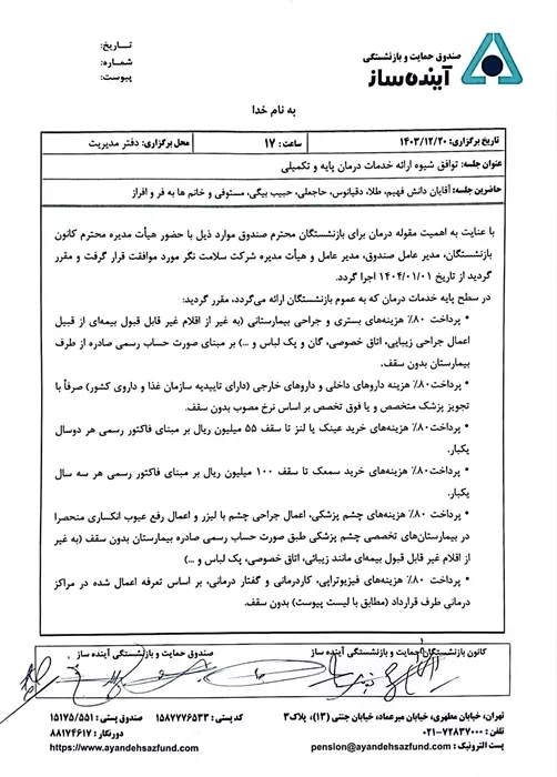 ابلاغ تفاهمنامه درمان 1404 بازنشستگان آیندهساز